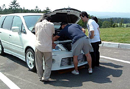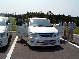 日時:7月24日 13:00〜 場所:美幌峠の道の駅 参加者 たかちゃん5.1さん、ももパパさん、nobutaさん、ポポロッチさん、 asahikumaさん、プレサンジさん メール:MMさん 電話:NORIKOさん 全国一斉オフ会、北海道はその面積の広さから、会場を二つに分け、西部戦線は支笏湖畔、 東部戦線は美幌峠の道の駅で、それぞれ13時開始で開催しました。 道東は東部戦線オフ会として美幌峠の道の駅に13時集合としました。 幹事は早めに行って昼食をとろうと12時前に会場入り。すると前を走るステッカー車が。たかち ゃん5.1さんでした。 二人で一緒に食事をした後、サンジ号のミラーウィンカーのアース不良を手早く直していただき ました。感謝! 集合時間が近づくにつれて続々とメンバーが集結。当初不参加のはずだったnobutaさんは仕 事をなげうって爆走参加(笑)。集合写真を撮ろうと車を整列中に、近くまで仕事に来たasahiku maさんが、ルミナスレッドのU31で旭川から乱入されました。 6台並べて集合写真を撮り、あまりの暑さ(30度超!北海道なのに・・・)に屋内へ、という声もあ ったのですが、あちこちで車を囲んで談義が始まり、そのまま駐車場でまったりとしました。 たかちゃん5.1さんのプレは車内のAV(前も後ろも5.1ch、4モニター)や車外の光物、足回 りなど全体的にいじられていて非常に参考になりました。なおちんさんと光物対決せねば! 次はボンネットダンパーを狙っているようです。 asahikumaさんのU31にはたかちゃんさんと幹事が試乗をさせてもらいました。 はずせない仕事のために戻るnobutaさんと旭川まで帰るasahikumaさんを見送った後、さすがに 30度以上の炎天下での談義に限界を感じ、道の駅内でしばし談義。15時過ぎに解散となりまし た。 今までのオフ会の中で一番暑いオフ会になりましたが、みなさんそれぞれ収穫を得ての帰還とな ったようです。 幹事:プレサンジさん |