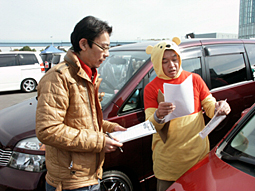 日時 2008年11月23日(日) 会場 お台場 <取材車両のオーナー> こいちさん、りおパパさん、旅人さん、三橋さん、materialパパさん たかまこ@OBさん、つかだ@OBさん、ohkj@OBさん <応援> Q45さん、シフトTHEフューチャーさん、小島@OBさん あすかのパパさん、つねたかさん、グレタカさん、OKERAさん、 ヒューベリオン、ひろパパJrさん <電信、電話乱入> ひーちゃんさん、マコ坊さん、Nobu&akika@OBさん 毎年、お台場にて行われる<avワゴンフェスタ>に今年も8台が当選しました。 恒例の着ぐるみも年々パワーアップ!av編集局に「今年もやるんですよね」と 密かに期待されていたりする名物シーンとなりました。 撮影会の様子はav誌の2・3月にて順次公開されますが、撮影会の様子の一部を 撮ってきましたので、雑誌が出るまでまずは先行公開です。 一部タイミングが合わなかったりなど写真が撮りきれなかった方がいますが、 その辺りはダイジェスト版という事でご容赦下さい。 |
