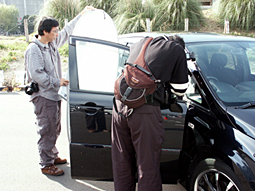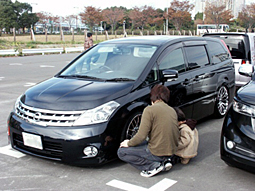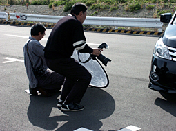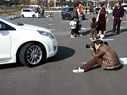 たかまこ号のピンポイント撮影中です。 スポーティーなフィンタイプホイールを カメラマンがショット中。 |