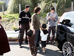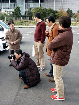 撮影の順番を待っている間の一コマです。 右から二人目に東北の方から乱入してきた怪しい人が いますが何か(爆)。深夜バスで東京入りし、 最終の新幹線で戻ると言うハードスケジュールで 参加してくれました。Q45さん、お疲れ様でした! |