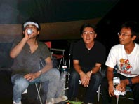 ![]() その時バサラ軍は、このアングルで談義盛り上がり中 左から、ちばサラさん、Ayuさん、釣大将さん |