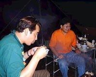 日時:01/9/15〜16の二日間 場所:岩手県岩手郡西根町、「岩手山焼走り国際交流村キャンプ場」 参加メンバーさん : おやじんさん、進藤さんご一家、Q45さん、Sawadaさん、みすたーWAさん (GO!バサより) : 釣大将さん(宿泊)、Ayuさん、ちばサラさん(乱入) |