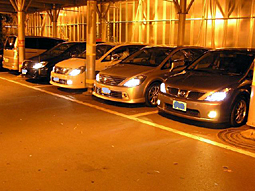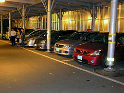 昼とは違った魅力のナイトオフ。 見慣れた車も違って見えます。 |