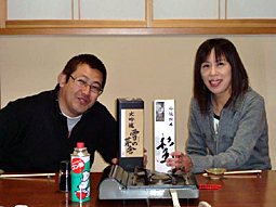サプライズ その3 これもまた 参加者一同よりプレゼント shigeさんから代表で お二人へ♪ うん!なんだべ〜なんだべ〜!! |