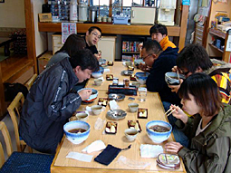 2日目は 新郎新婦さんのご希望で 冷たい肉そば を食べに行きました。 一同 おそば屋さんへGO!GO!GO! |