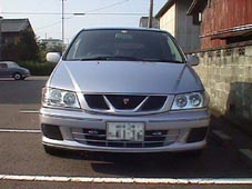 購入は通販で塗装込みで63600円。色の誤差は私の場合 ほとんど気になりません。 注文から2週間で送られてきました。 取り付けに関しては、はっきり言って大変です。出来れば ショップに頼むのをお薦めします。 隠しネジやら、ピン外すのが、とても大変です。(走行中に 飛んだらまずいですもんね。) 取り付けは純正ネジ穴2カ所を純正ネジ使用で固定します。 そのほか私は両面テープで補強しました。 あと、加工取り付け用のネジ穴が両サイドにあります。 ちなみにここまでの作業時間は外しに2時間。固定に1時間 かかりました。 スタイルは、はっきり言って凄いです。見ていただければ良く わかると思います。可変部分はネジにて固定(両方1カ所ずつ) 調整幅は2段のみ。1段は平行に、もう1段が抵抗がかかる状態 になります。 |