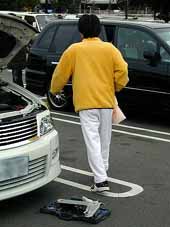 日時 2002年3月3日 場所 カレスト座間 雨にたたられて2回、取付け作業のお預けを食らった神奈川オフ。 3月3日のひな祭りオフも薄日が差す程度で気温が上がらず、必ず しも良い天気とは言えませんでしたが、カレスト座間の駐車場の一 角を占領?して久々に大々的な作業を開始。 今回の取付けメニューは私が“何故か3本持っていた(爆)”タワー バーを3台に一挙取付けとマフラー交換3台。まりっぺ号のセカンド シート復旧。GOバサ@hiro号のビレットグリル化&ステア交換。 ken’s号のブラックライトの取付けと今後の拡張用配線の取り回し。 のり号から各種パーツの取り外し^^;、などなど多岐に渡り、朝10:0 0から夜の7:00まで取り付け作業をやってました。 足回り交換も予定ではあったのですが、スプリングコンプレッサーが 調達できず、この日は断念。また後日になりましたが、次のオフ会が 楽しみです。 GOバサ大漁旗もこの日オフ会初登場!兼ねてから念願であったG Oプレ大漁旗とのツーショットがついに実現! これから全国各地でこの光景が見られることでしょう。 では作業の合間に何枚か撮った写真をご覧下さい。 |