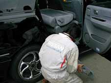 セカンドシート復旧 セカンドシートレス仕様のまりっぺ号。 車検が近いと言うことで、シートを元に戻しています。 ここでもNobuさんが大活躍。 シートレールごと外してあったので、全部元に戻しました。 しかし一体何キロあるんだ!?プレのシートは! 腰痛くなってくるぐらい重たいです。 |