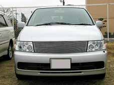 隼人号マフラー 同じくライダー、隼人号のワンオフ・デュアルマフラーです。 キャタライザーからテールエンドまでワンオフしたマフラーで、 かなりいい音がしてました。バンパーの開口部が広いので、 デュアル出しのマフラーがよく似合います。 |