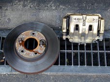 これまで足回り・点火系・冷却系・車体剛性と強化を施してきたMyプレの 次なる強化項目は車の基本中の基本、止まること。 1年ほど前にインパルのパッドとシューを導入して以来、 現状のレベルでは止まることに関して、ほとんど不満はありませんでしたが、 今後の展開とCPU交換によって確実にパワーアップすることを見据え、 思いきって以前から「可能ならやりたい」と考えていたフロント強化ブレーキの スワップを行なうことにしました。 スワップしたのは<米:アウトロー社製>のS15用強化ブレーキシステム。 ショップのデモカー、S15と比較して酷似していたことから、 S15用としたのですが、実際に取付ける段になると、ブラケットの形状が若干違う、 ローターが厚くオフセットが変わる、ブラケット取付けボルトの大きさが全然違うなど、 バラしてみないとわからない問題が噴出。分解したブレーキと強化ブレーキを前に、 ショップの社長が2時間半近くも悩み、半日で予定の取り付けが1日がかりになる ほとんどワンオフに近いものとなりました。 以下の写真は純正との比較や実際に取付けられた状態を撮影したものです。 比較するとコスト重視の純正とアフターパーツとの作りこみの違いに驚かされます。 |