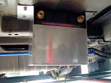 バッテリーを内蔵して床下に取付けた状態です。 センターロアームバーが写っているので、 場所が大体わかると思いますが、 ほぼ車体の中央部分になります。 |