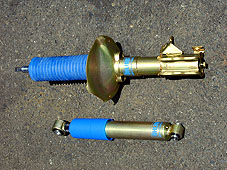 これまでMyプレと共に4万キロ以上を走りきったビル足とタナベ サス(共にフロント)です。 ビル足は結構きているハズでしたが、ヘタってきてなお、縮めよ うとしても、純正のようにズルズルと縮まない辺りはさすがです。 タナベのサスは知らない内に相当ヘタっていたらしく、物理的に はタナベより1cmダウンになるはずのオーリンズ+kg/mmのN ew足回りの方が、逆に微妙ながら車高が上がってしまいました^^;。 |