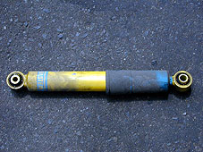 上と同じく、リアのビル足です。 ついこの間、ダリアンさんがバサラの足を組んだ際、取外したダリ アン号の純正リアダンパーはブッシュがボロボロになってましたが、 ビル足はそんな兆候もなく、まだ十分使えそうでした。 (結構、過酷な走り方をしているハズなんですが) こちらもフロントと同じく、今だに縮めるには相当力が必要なほど固 く、縮めてもあっという間に元に戻ってしまう辺り、さすがはアフター パーツです。 オーバーホールすればまだまだ十分使えるでしょう。 |