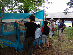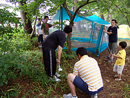| 挨拶も済んで早速タープ設営です。お手伝い頂きまして本当にありがとうございました♪参加人数は余裕で入りますよ〜 | |||||