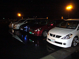 日時:2006年10月8日(日) PM19時00分〜 場所:イオン十和田スーパーセンター <参加者> トニーさん、みーたんさん、ボブさん、ひさくん、なおひろくん PREsaraGEさん、ちばサラ@GO!バサさん、Q45さん(幹事) ylemさん@エスティマ(ゲスト) <電信電話乱入> ゆまさん、ハグリットさん、ヒューベリオンさん、シフトTHEフューチャーさん うめ吉さん、でんすけの父さん、りおパパさん、たくみ@OBさん <レポート> 前日までは、台風並みの低気圧の影響で、一部の地域では避難勧告が出るほどの 天候でしたが、前日の天気予報では日曜日には回復する予報で一安心♪ ところがオフ当日になっても、いっこうに雨がやむ気配は無く夕方に・・・。 しかも、久々のオフで張り切っていた、ゆまさんが急な仕事でドタキャン(^^;) 取りあえずオフ会場へ行き待っていると、ひさくん、ボブさん、ちばサラさん登場! 続いて登場したのが、今回、奥さんと青森に旅行に来ていたトニーさん! そして、みーたんさんと、なおひろくん登場!! まだ小雨が残る中、駐車場で自己紹介と談義が始まりましたがこの時期としては 青森でも寒い気温11℃(>_<;) たまらずにスーパーセンターの中のコーヒーショップへ移動しての談義。 すると、送れてきたPREsaraGEさんが到着。残念ながらMCU31を発注した お友達は不参加でした。 怪しい集団と思い躊躇したのか?(爆) やっと雨もあがったみたいなので、再び外へ出るとプレの近くにNEWエスティマが! ゆまさんと面識のある地元のylemさんがゲストで乱入してくれました(^o^) 途中、平和島での第2部開催中のりおパパさんから電話乱入があり関東メンバー数人と 来月の仙台での再会を約束して電話終了。 最後に全員で記念撮影してお開きとなりました(^o^)/ それにしても寒かった〜(^^; |