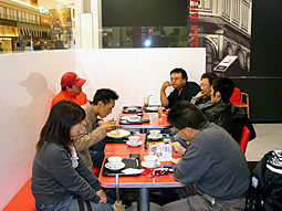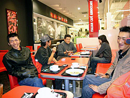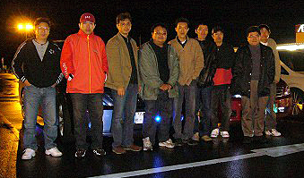 寒い中、外で談義中のいつものメンバー(笑) この後たまらずに中へ移動しました(^^; |