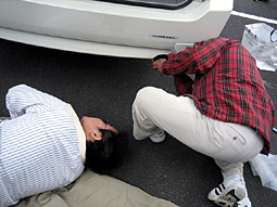 日時:2006年10月8日(日) 午前10時〜午後3時30分 場所:福島県郡山市日和田町 フェスタ郡山駐車場 <参加者> ガキちゃんさん、プレジャさん、べっくさん、たくたくさん、マコ坊さん(はしご車)、 U30後期乗り非メンバーさん、ひーちゃんさん(幹事) <電信電話乱入> こいちさん、宝空さん、旅人さん、こみさん、みのるさん、チュンバさん <タイムスケジュール> 午前10時00分 オフ会開始 午前10時30分から11時15分 近くのカーショップを物色 午前11時30分から午後0時30分 地元ではちょっと有名なドライブイン幸華で昼食 午後1時00分 マコ坊さん到着 作業開始 午後1時30分 ひーちゃん到着 午後1時45分 記念撮影 午後3時30分 オフ会終了 解散 <レポート> 全国一斉オフ山形・福島の部はフェスタ郡山名物の大観覧車下の駐車場で行いました。 今回、私は幹事でありながら、土曜日開催予定だった子供の保育園の運動会が日曜日 に延期となったため、合流は午後1時30分位になってしまいました。そのため、それまでの 間の幹事代行をガキちゃんさんにお願いしました。 ガキちゃんさんにはこの場を借りて改めてお礼を申し上げます。 さて、この日は全国的に荒れた天気でしたが、ここ郡山も凄まじい突風が吹き荒れ、また、 時折、雨が舞うという非常に厳しい1日でした。大観覧車も強風のため運転していませんで した。記念写真を撮影しようとしたら三脚ごとデジカメも飛ばされてしまいました。 こんな天気だと気持ちも萎えてきますが、この日の朝に翌日曜日(15日)に開催されるav プレイヤーin郡山への当選を知らせるメールがマコ坊さんとガキちゃんさんのもとに届き(ち なみに私は落選でした。ガクッ)、天気とは逆に前向きな気持ちでプレ談義と軽作業を行 いました。 この日の軽作業は、たくたくさん号のマフラー交換とリアスポイラー交換、ひーちゃん号の リアフェンダーアーチモールを剥がした後の両面テープの糊の除去作業でした。 簡単そうで意外と面倒な作業ですが、そこは宮城経由で参加してくれたマコ坊さんが大活 躍でした。作業は早いし、仕上がりもキレイで相変わらず良い仕事してくれました。 ところで今回も先週の福島オフに引き続き、浜通り地方にお住まいのU30後期乗り非メン バーさんがお友達と遊びに来てくれました。これはとても嬉しいことですね。 この全国一斉オフの目的である「プレを通じて親睦を深める。」、「初心者さんにオフ会の 楽しさを伝える。」というのが、ここ山形・福島では一応達成できたのかなと思いました。 今回参加した皆さん、本当にお疲れ様でした。 また今回残念ながら来れなかった皆さん、次の機会に会えることを楽しみにしております。 |