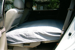 それでマットをひきますと、セカンドシートのところでこのような 隙間が出来てしまいますので、その間にクッションや毛布などを入れる 工夫も快楽の方法の1つだと思います。 |