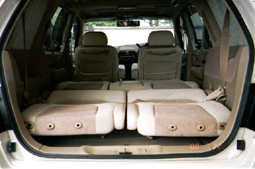 これが皆さんが見慣れているプレサージュが誇る セカンド、サードシートにおけるフルフラット状態です。 私の車は8人乗りです。 |