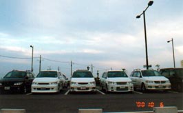 日が沈まないうちに集まった5台。 一番左がアウチ号、そして話題となったエアサス仕様のナガ号。 最下限にすると煙草を寝かせても入りませんでした。 |