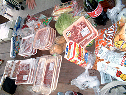 今日の総勢14名の腹に収められる予定の食材です。 一番人気は、飲み物のコーラでした。 みんな炭酸には目が無いようですね〜。 次回からは多めにします。 |