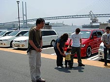 ■日時 2002年6月2日 10:30〜23:00 ■場所 SABサンシャインワーフ神戸→大阪堺、カモドゥー→コンチネンタル ■参加者 SABから 【GOプレ】小島君、平松さん、かずりんさん、たかみつさん、ぜんきさん、 ひがこさん、きららさん、たけもとさん、のりさん(OB)、サージさん、あきらさん、 miyakkoさん、クウガ 【GOバサ】くろぴーさん、やっちんさん、きったんさん、キャプテンさん、しばさん、 カモドゥーから せんごくさん、jerryさん、アウチさん、ナガさん ・。・゜★・。・。☆・゜・。・゜。・。・゜★・。・。☆・。・゜★・。・。☆・゜・。・゜。・。・゜★・。・。☆・。・゜★・。・。☆ 埼玉から仕事の関係で単身、姫路に乗り込んで早1年半。 その間転勤が1度あったものの何とか関西に留まっていましたが今回は退職され埼玉へ帰る事になった 小島君を送り出してあげようとオフ会を企画したら何と総勢21台も集まってしまいました。 これは小島君の人徳のせいか、はたまたサードタイトル「単にオフ会しようよ」で集まったのかは定かでは ありません。 何台か集まった集合10分前。 子供とジュースを買いに言った時、見た事のあるエスクが目の前を通過! そうです。神奈川乱入王の1人、のりさんです。で、なんと助手席には彼♀。 これを見た小○君の目が点になっていたのを私は見逃しませんでした。 さて、関西ではオフ会定番のSAB駐車場。 満杯になるのを避けて早めの10:30に集合時間を設定にしたにも係わらず出だしから当地管理組合より クレーム!! 「日曜日にこの台数集めて一画を占領されるのは困る」との事。 何とか12:00まで居させて貰うことで交渉成立。 幹事の情報収集不足によりSABからお集まり頂いた方々には大変ご迷惑をお掛けいたしました。 特に遠征乱入されました平松さん、きららさんには予定外の場所移動に伴いSABでお別れとなり、申し 訳ございませんでした。 この日のサブタイトルは「小島君の名刺を貰おう」と言う事で彼はせっせと名刺をPC上で完成させ、いざ 印刷!・・・・と言うところでPCがこけたそうです。私にレスキューコールが来たのはオフ会前日!! 結局夜なべして名刺作成を手伝わされたと言うオチがありました。 普通、関西のオフ会で自己紹介なんてやってないのですがこの日は遠征、初参加の方も居た為、自己 紹介をやり丁度円陣体制でしたので「小島君そのままみんなに名刺配ったら?」となり彼はぐるっと一周 名刺を配り、満足そうな顔をして居ました。 ここで場所移動! 一部の方とはここでお別れとなりました。 それでも12台で阪神高速湾岸線を一路、堺まで編隊走行と予定外の演出に皆さん満足!! 現着後すぐに各人取付作業、昼食、談義、昼寝?、色々でした。 小島号にもピンクのネオン管が装着させられました。(強制的) 15時過ぎにのりさんを送り出し夕方のでまったりとこの場所でオフ会。 一応、中締めをして常連、AKDメンバーによる夜の部、突入です。 またまた場所を移して密会第一基地24hレストラン「コンチネンタル」 小島君との思い出話に花が咲かずいつものようにダベって23時にお開きとなりました。 |