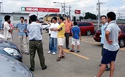日 時 :2006年9月10日(日) 10:30〜17:00頃 場 所 :千葉県柏市 オートウェーブ柏沼南店 立体駐車場2F 参加者 こいちさん、旅人さん、みのるさん、五十鈴太郎さん、りおパパさん、プレ77さん、マコ坊さん、 GREAT TAKAさん、つねたかさん、シフトTHEフューチャーさん、nobu&akika@OBさん、 yone@GO!バサさん、チュンバさん、こまざきさん、あすかのパパさん、ヒューベリオンさん、 吉川のガンの助さん、たかまこ@OBさん、StarRise@GO!バサさん、下山(順不同) 以上、20人の方々でした。 (U30:5人 U31:10人 OB:2人 バサ:2人 同乗:1人) 電話、メール等で参加された方々(幹事の認識している方々のみです) のり@OBさん、小島@OBさん、osumanさん、ぷれっちさん、ガキちゃんさん、 みーきさん、ゆまさん(素敵な画像付き)、ガキちゃんさん、ひーちゃんさん ※レポートの作成がめちゃくちゃ遅くなってしまいました(^^;) 参加された方々、そして、もしかして楽しみにされていた方々には大変申し訳なく思っています。 子供たちの夏休みが終わってようやく今までどおりの生活に戻ってきたかな?という時期に 恒例(?)の千葉・柏でオフ会を実施しました。(春にもやりましたが) 例によってこれといった目玉もありませんでしたが、たまには車談議中心のオフということで、 みなさん楽しまれていたようです。いつものオフ会とは違い、幹事の認識している限りでは 参加メンバー以外のご家族は2人のみ!!うーーん、予想通り。。。予想以上?(笑) 当日は9月になったばかりとはいえ最高気温34度!! みなさんの帰還報告にもそのことばかり、というほど暑い一日でした。私を含め、帰宅後に鏡を 見て真っ赤になってしまった顔に驚かれた方も多かったと思いますが、雨が降らなかったので 良しとしましょう!(^0^) これに懲りず、次回企画したときはみなさんまた参加してくださいね! ここからは恒例?のみなさんの愛車紹介とオフ会光景です(^o^) 画像のなかった方々、ごめんなさい(^^;) |