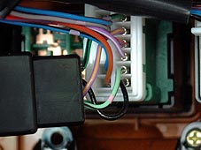 鶯色に黒線 ・ 紫に黄色の線(+) ・ 緑に黒線の4本を使用します。それと、配