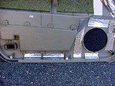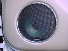 デットニング使用部品 @東京防音製 レジェトレックス 3本 その辺のホームセンターで売っています。 これだけあれば、ドア4枚充分足ります。 私は1本4000円で購入しました。他社の市販デットニングキットは 値段が高すぎます(怒) 製作方法 写真を参考に切って張るだけ・・・超簡単! ポイントはドアの穴をふさぐのと、スピーカー周りは重点的に。 出来るだけ縦に長く張るとGOOD! あとは好きなように張ってもらえばよいです。 内装の取り付け穴をふさがないように注意 効果 こんなので何が変わるの?と思われるでしょうが ここまで張れば効果は絶大!(ちょっと張りすぎかも) ご使用のスピーカーが別物のように鳴ります。 低音の出方なんかはビックリしますよ。 純正のスピーカーでも、笑っちゃうぐらい良く鳴るので 高いスピーカーはもう要らない? 欠点はやりすぎるとドアが重くなります。 アウターバッフル使用部品 @インフィニティ−製 16cmスピーカー用グリル Aセメダイン スーパーX 接着剤 マニアックな米国製の高級スピーカーなのでグリルの入手は難しいかも・・・ スピーカーを買えば、当然付いてきます。 グリルはスピーカー交換しても、普通は使わない物なので、 オークション等で入手できる可能性大ですが・・・ ちなみに私はスピーカーを買いました。海外のスピーカーは本当に良い音がします。 カタログ数値だけの国産では出ない音が出ますよ♪皆さんも是非どうぞ 製作方法 @ドアの内装を取り外し、スピーカーグリルの周りのシルバーのリングに沿って 内装を切り抜く。 大変そうな作業ですが、あらかじめドリル等で円に沿って穴をたくさん開ければ カッターで意外に簡単に切り取れます。 でも、少々の失敗を気にしない思い切りが必要ですが・・・ AインフィニティーのグリルをスーパーXで接着 セメダインのスーパーXはビックリするぐらい良く付きます。 材質との相性が良いんでしょう。 効果 純正内装のスピーカーグリルは見てもらえば分かると思いますが、 音の出口が少ない(穴がちょっとしか開いてない)ので、いかにも効率が悪そうでしょう。 アウターバッフル化で音の抜けがとてもよくなります。お聞かせ出来ないのが残念。 今回、インフィニティーのグリルにこだわったのは、サイズがプレサージュに ピッタリで、改造後の見た目が良いからです。ブランド名も日産車の米国ブランドだし! 効果は他社のスピーカーグリルでも変わらないでしょう。 |