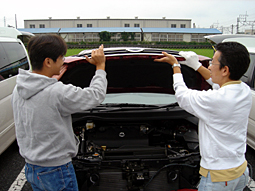 U30と違ってボルトが7本もあり、しかもボンネットにグリル が付いていますので、二人で交換しました。 |