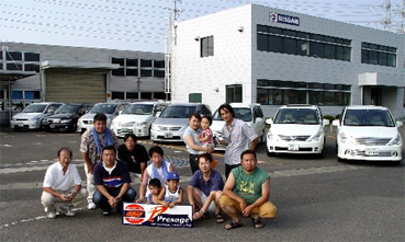 日時:7月18日(土)11時〜16時 場所:日産宮城サービスセンター(株)駐車場 天候:晴れ <参加者> プレ55さん、nigelさん、めめのすけさん、、ととろっちさん、 こみさん、びっくぱぱさん@P’S、旅人さん、インチさん、マコ坊さん <メール&電話乱入> 管理人こいちさん・みみさん@P’S 今回は、私(インチ)とマコ坊さんの個人的な「一度お会いして、プチオフなんて出来たら最高ですね」 の会話(@携帯メール)が発端で全国一斉オフの6日前という殺人的なスケジュールでの開催となりました。 当日は前日までの強い雨はうその様な梅雨時とは思えない様な晴れの天気でした。 一日の始まりはマコ坊さんの起床から始まります。(3時?)バケツを持って菅生PAへ。 (5時半には到着)オフ会の準備をするマコ坊号(洗車)旅人さんと合流、11時ごろ マコ坊号、旅人号 の到着=開始から次々と集まってきて、出張先の新潟からととろっちさんが乱入〜山形からも めめのすけ さんも突然の乱入=お昼も過ぎて、2時半頃社員旅行帰りに駆けつけてくれた!こみ号到着、4時の解 散までずっとプレ談義、互いのプレ物色というプレ好きにはたまらない一日でした |