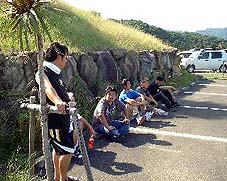 日時:平成14年8月4日(日) 午前11時〜午後4時 場所:「サンメッセ日南」 参加者:三浦さん,さのかずさん,zamaさん,吉川さん,はたの(GO!プレ) ヤマシュンさんとお友達(GO!バサ) 乱入者:藤原さん 電信乱入者:ナガさん,くろぴーさん,サージさん,やっちんさん,クウガさん, あきらさん,ヒロスケさん,小島さん,ezaさん,kiwiさん,ヒューベリオンさん まずは会場となり,たくさんの心遣いをしてくださった「サンメッセ日南」様に厚く お礼申し上げます。 1年前の「九州オフ会」終了後から「今度は南九州でオフ会をしよう」という話が あったのですが,なかなか実現できずにいたところ,ちょうど三浦さんファミリーが 九州旅行をするということで歓迎の意味を込めてオフ会実施の運びとなりました。 きっかけを作ってくださった三浦さんに感謝,感謝!! 集合時刻の1時間前の10時に集合場所に行くと,すでに乱入の「藤原さん」が到着 されていました。12時間かけてこの宮崎に来られたとのことで,頭が下がります。 しばらくすると爆音とともに「zamaさん」と「吉川さん」が到着。そしてなにや ら黒い覆面姿のちょっと怖そうなプレが・・・ そうです,「さのかずさん」の登場 !! このブラプレが後ろから迫ってきたら思わず道をあけてしまいそう。しばらく すると2台のバサが仲良く到着。「ヤマシュンさん」です。本人曰く「兄弟みたいな 車」の通り2台ともホワイトパールのアクシス,おまけにホイールも同じ・・・間 違って相手の車に乗り込んだりしないのかなと心配したところでした。 集合時刻の11時になり九州旅行中の「三浦さん」に電話入れると「都井岬の灯台」 にいらっしゃるとのことなので先に食事をとることにしました。食事を食べ終わった 頃に「三浦さん」も合流して自己紹介。みなさん寝る間を惜しんでオフ会会場までた どり着かれたようで,その努力に感動!! 食事を済ませ,園内を散策したあとに大漁旗とともに集合写真撮影。子どもたちに大 漁旗を持ってもらいましたが,大人から何も言われなくても手際よく持つ姿に,「G O!プレ」予備軍の意気込みを感じました。 そしてオフ会のメイン?の「吉川号」のプチ作業の開始。「吉川号」のリアハッチを あけるとパーツや工具,おまけに奥さんの知らない間に積んだというビーチパラソル とそれを立てるブロックまで出てきてすっかり「プチ作業@夏バージョン」の準備完 了!!今回のメニューは,コーナーセンサーとマフラーの交換です。「吉川さん」と 「zamaさん」の2人でせっせと作業されている横で,初めのうちは他のメンバー さんもじっと作業の成り行きを見ていましたが,余りの暑さに日陰に避難(ごめんな さい)。それでも2人は一生懸命作業され,約1時間弱で作業終了。汗まみれ,草ま みれで作業されたおふたりさんお疲れさまでした。 作業の間,男たちを横目に女性の方々や子どもたちはカートに乗って園内を回ったり おみやげを買ったりされていました。 初めての「南九州オフ会」は,とにかく暑いオフ会でした(当日は35度だったそう です)。しかし,メンバーさんとも交流を深めることもでき,初幹事で不備もあった と思いますが無事終わることができてほっとしています。次回はもっと涼しい時期に 計画したいと思います。三浦さん,今度は涼しい時期に九州旅行をしてくださいね (爆) |