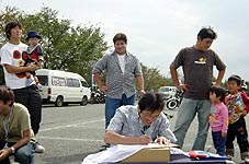 開催日 :2002年9月29日(日) 開催場所:静岡県・朝霧高原「もちや」駐車場(一部貸切) 参加者 :のり@OBさん・Ken'sさん・大場さん・むさっちさん 隼人さん・小島さん・トラさん・クリプさん・ミヤチさん ノリ蔵さん・やまさん・ RYU&KANAさん・すすさん・中込さん 幹 事 :和君さん・いいくぼさん 内 容 :大漁旗リレー・プレ談義・カレンダー用写真撮影 当日は心配された天候も曇り空ながら時おり日差しも射し過しやすい一日でした。 残念ながら数日前に初冠雪のあった富士山は雲に覆われ山頂部までは見る事が 出来ませんでした。 参加メンバーも地元の静岡東部と山梨以外にも東京・神奈川・埼玉そして 同じ静岡でも西部の浜松方面からの参加もあり幹事の予想以上の参加となりま した。 オフ会の内容としては、自己紹介・集合写真の撮影・寄せ書き・大場さん提供の ワックスなどをジャンケンで争奪戦をして後はプレ談義となりました。 取り付け作業は朝イチにKen’sさんのブラックライトの取り付けだけでした。 今回は家族参加も多く女性陣もおしゃべり、子供たちも皆で仲良く遊んでいました。 そして、いつに無くゆったりとしたオフ会となりました。 最後に、このオフ会での一番のニュースは参加メンバーのRYU&KANAさんが 前日に結婚式、翌日にはオーストラリアへ新婚旅行に行かれるとの事でした。 |