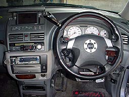 運転席周りです。 純正MOMOステアリング、バサラアクシス のシルバーメーター、アペックスレブスピ ードメーターです。 オーディオはパナソニックCQ−MRX90 9です。 オーディオ周りパネルはバサラの物です。 |