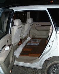 内装はセカンドシートを取っての自作フローリングです。