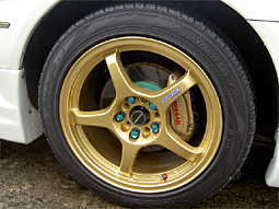 やはり純正の大型リアウイングは良いですね〜。 砲弾斜め出しのエキマグGT−Uとエアロのお陰で腰高感がな くなりいい具合です。CIマークも新タイプに交換しています。 |