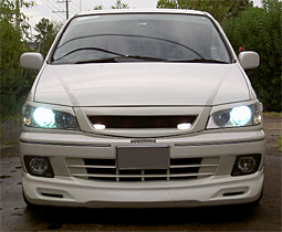 CRUIZE製HIDユニット 純正ハロゲン交換タイプなので HID化が簡単!しかも安い!! 昼間での撮影の為解りにくいですが かなりの明るさと白さです。(8000k) |