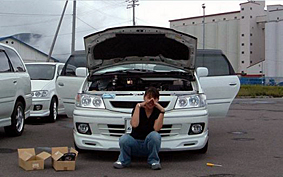 ![]() クリアウインカーの取り外し作業中。 もとにもどっていく〜と泣くYOUKOさん |