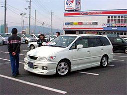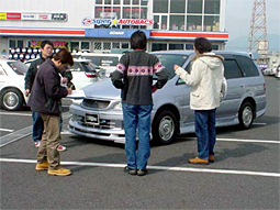 <日時> 2月28日 土曜日 10時から <場所> スーパーオートバックス湖南店 <参加者> ヒューベリオンさん たかみつさん せんごくさん サージさん ぬまちゃん@バサさん まるいちさん@もうすぐ入会 平松さん 今回は私のオプションワゴン誌内の「オプワゴ隊が行く!」のコーナー出場が 決まり、ついでにオフ会を開こうと言うことで急遽開催しました。 1週間前の土曜日に私に出場の電話連絡があり、その際ひょんな事からキャ ンセル枠2名分を頂きました。そこで、撮影会の地元でエアロ等の交換をされ ている方を考え、たかみつさんに要請しました。しかしながらもう1人が思い浮 かばず、冗談半分でヒューベリオンさんにメールで問い合わせたところまさか の「OK!」と言うことで私を含め3台の出場となりました。これも数ヶ月前までの オプションに対する投稿が効いたみたいです。 当日、ヒューさんと7時に養老で合流。たかみつさんと8時に多賀で合流し現 地に向かいました。 現地ではぬまちゃんさんやせんごくさん、サージさん まるいちさんと7台のプ レ・バサが店先に並びました。他にアルファードやセレナも数台集まり、異様 な感じの駐車場でした。 撮影と平行して、メンバーどうしの交流や、まるいちさんの強制入会など行い ながらの撮影でした。 撮影では、私やたかみつさんの物より やはりヒューさんの車が一番珍しい状 態で画像を見ても解るように黒山の人だかりでした。 撮影も終わり、ファミレスで食事をして、その後解散となりましたが 新規メンバーの開拓等楽しい時間を過ごすことが出来ました。 今後も各地で開催されると思いますので、皆さんもどしどし応募して参加 してみてはいかがでしょうか! |