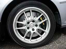3年前、車のパワーアップを見据えて導入した <Outlow社>のS15用強化ブレーキシステムも、数万キロ走行により ローターが磨り減ってスリットが完全に消えてしまい、ローター自体にも 寿命がきました。 また、キャリパーが強化品としてはかなり小さめであり、プレの車重を支 えるにはやや力不足で、ハード走行による酷使もあって開き気味になっ てきていました。 ローター交換&キャリパーをオーバーホールして使うか?それとも?? という選択をしなければならなくなった中、更に先のステップを考えて 導き出された答えは、思い切って本物のレーシングブレーキに交換し ようと言うものでした。 2セット目の強化ブレーキとしてチョイスしたのは、alcon(アルコン)とな らぶブレーキの名門<AP>。 ブレーキの制動能力はポット数よりローター径とパッドの大きさによって 左右される部分が大きい為、4ポットでも十分過ぎる性能を得られます が4ポットの場合、ブレーキング時のコントロール性が多少荒くなり、強 力故にドッカンブレーキとなってしまう為、コントロール制に優れる6ポッ トを。ローターは17インチのホイールでは限界一杯の355φ(14インチ) を採用しました。 以下の写真はOutlowブレーキキットとの比較や、実際にAPのキットが 取付けられるまでの様子を撮影したものです。 純正はOutlowを導入した際に廃棄してしまった為、3種類並べて比較 に持ち出せなかったのがちょっと残念です。 |