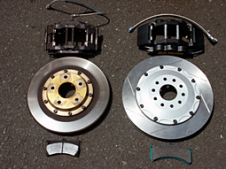 Outlowキット これまで装着していたOutlow社製 ビックキャリパーキットです。 パッドはまだ半分以上残ってましたが、 ローターは既に限界にきていました。 |