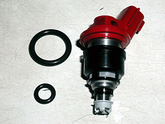 HKSの強化インジェクターです。 最大吐出量は740ml。SR20のノーマル インジェクターでも300ml程度だそうなので、 実に倍以上の吐出能力があることになります。 800PS以上を発揮するアリストやGT−Rに 使うものと容量は同じ。実質的には555mlでも 十分でしたが、敢えてこちらを使用したのは、 容量不足による噴射量不足が確実に防止できること。 740mlのインジェクターの方が555mlの物より 無効噴射時間が短く、レスポンスに優れるためです。 |