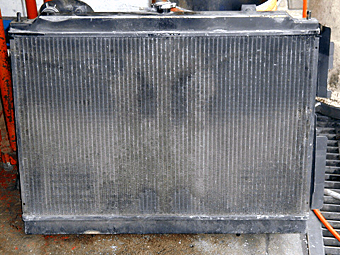 エンジンを降ろす際にラジエータも邪魔になるので 取外しました。現物全体の写真に撮った事が無いので、 これを機会に収めたものです。 既に導入してから7年は経過しておりますので、 かなり汚れと一部にコアの損傷が見られますが、 未だ問題なく十二分に機能を発揮しております。 銅ですので渋滞時にも優れた冷却性を発揮しますが、 やはりネックは重さ。重量は17kgありました。 ベストは銅の冷却性とアルミの軽量を掛け合わせた 真鍮製ですが、維持管理が難しく、コストもかなり 高いものとなってしまいます。 |