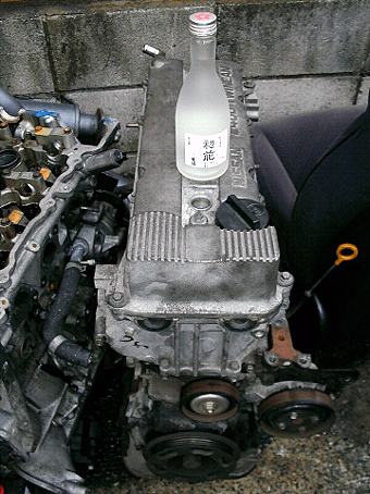 14万キロを支え続けてくれたKA24といよいよ お別れする時が来ました。頑丈一点張りの設計で重い、 回らないとU30が雑誌で散々に言われた理由の一つに なったエンジンですが、このエンジンは14万キロを ノートラブルで走った私の大事な相棒であったことに 変わりはありません。私の最初の愛車の心臓であり、 いじる楽しさやGOプレ、そして多くの仲間との交流や 出会いのきっかけを作り、支え続けてくれました。 サーキット走行時に160km/hで頭打ちになってしまう 加速にやきもきしながら、それでもいじる度に過走行の くたびれを感じさせず成長をするこのエンジンは 雑誌の評論家が何と評価しようが私にとっては名機。 せめてもの最後の儀式としてお清めをしました。 |