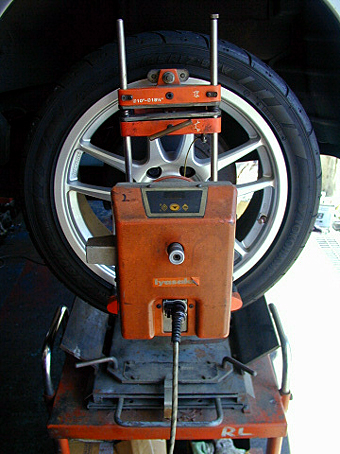 延び延びになっていたアライメントの計測を行いました。 4輪にこのような計測器具を取り付けて計測を行います。 計測方法は他にタイヤの外側に装着して行うタイプや、 ホイールの内側に装着するタイプ、中には計測器の上を 走らせただけで計測できるタイプ(機械のお値段が驚きの 2千万円もするそうですが)などがあります。 中身はセンサーや精密器具の塊で、落として壊してしまうと 修理に60万円もかかるんだとか。 |