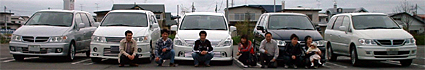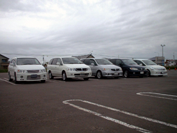 いつもの風景です。 一番低いのはせばすちゃんさん号、車高調一杯だそ うですがもっと下げたいとおっしゃってました。 |