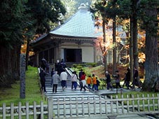 金色堂へ向け中尊寺境内を移動中のGOプレ& GOバサメンバー。 歩きながらも会話や笑いが絶えません。 |