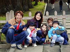 金色堂前の記念撮影ポイントで集合写真を1枚。 あれ?こいちさんの左隣にいる人は?? |