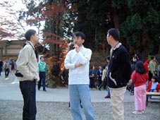 丁度境内は紅葉が見頃を迎えていました。 パラパラと葉が散り始める中メンバー全員、 「思いもかけなかった所で紅葉が見れた」とそれぞれ 写真を撮ったりして楽しんでいました。 |