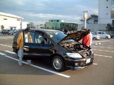 日産の開発担当者の方が乗ってこられたハイウェ イスター。 皆、ボンネット開けたり車内を覗きこんだりと興味 津々。 日産担当者:この車でこの部分がほしいっていうの あります? メンバー :エンジンがほしい。 ヒュー :あっ!何かいじれなさそう…。今のでいいや。 担当者は苦笑い。 メンバーは爆笑して妙に納得してました。 |